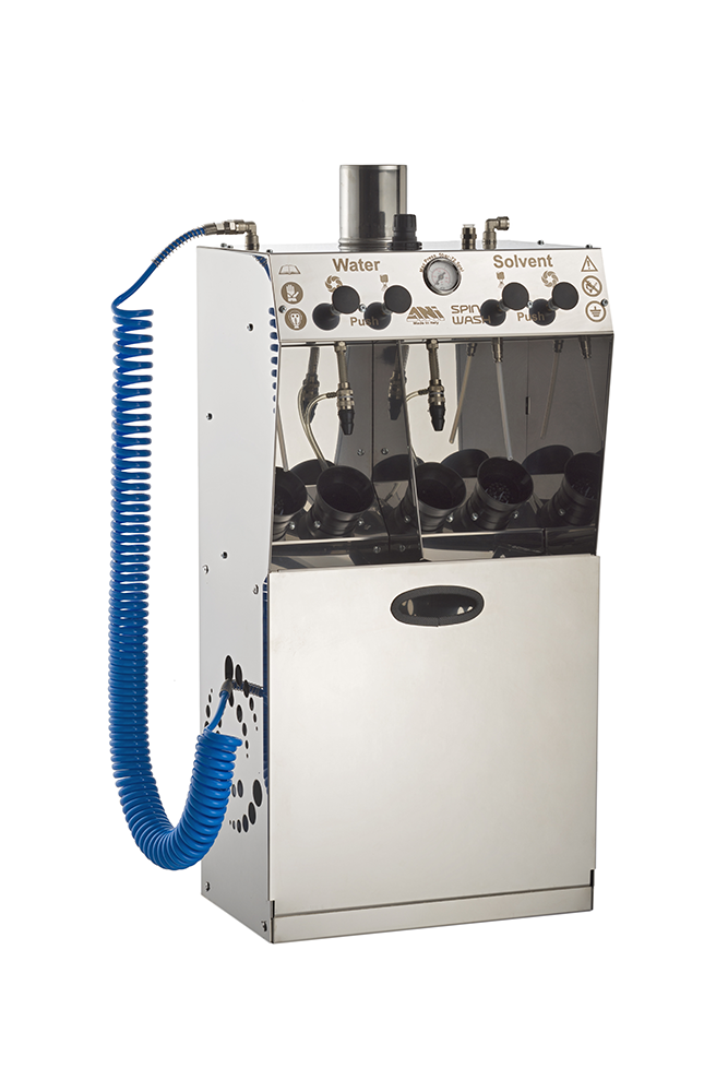 SPIN WASH to myjka do pistoletów lakierniczych, w całości wykonana ze stali nierdzewnej, która umożliwia mycie różnego rodzaju pistoletów: