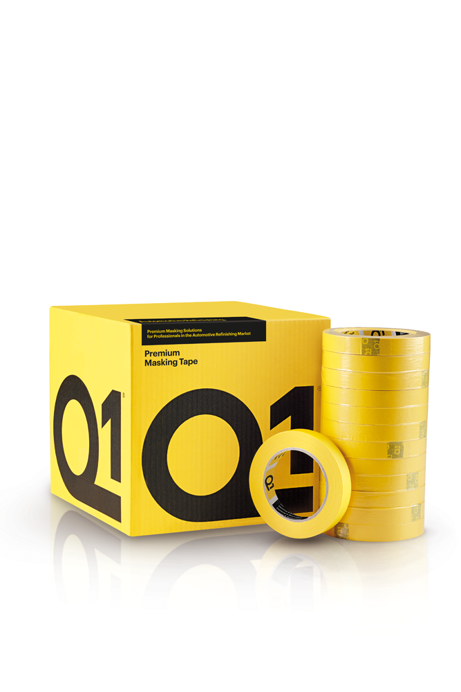 Dzięki wyważonej konstrukcji taśma maskująca Q1® Premium Masking Tape zapewnia płynne rozwijanie, łatwe urywanie i precyzyjne dopasowanie, jednocześnie bardzo dobrze sprawdza się w przypadku użycia “taśma na taśmę”.